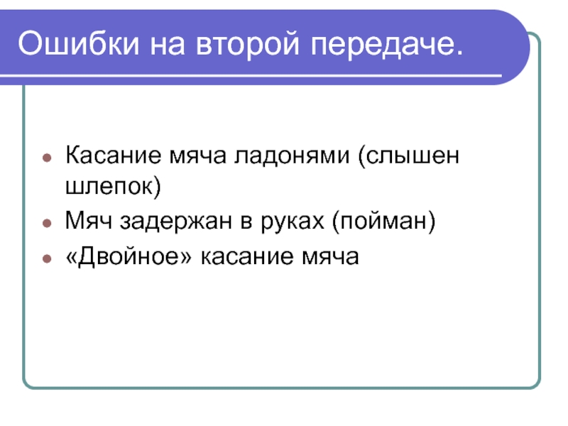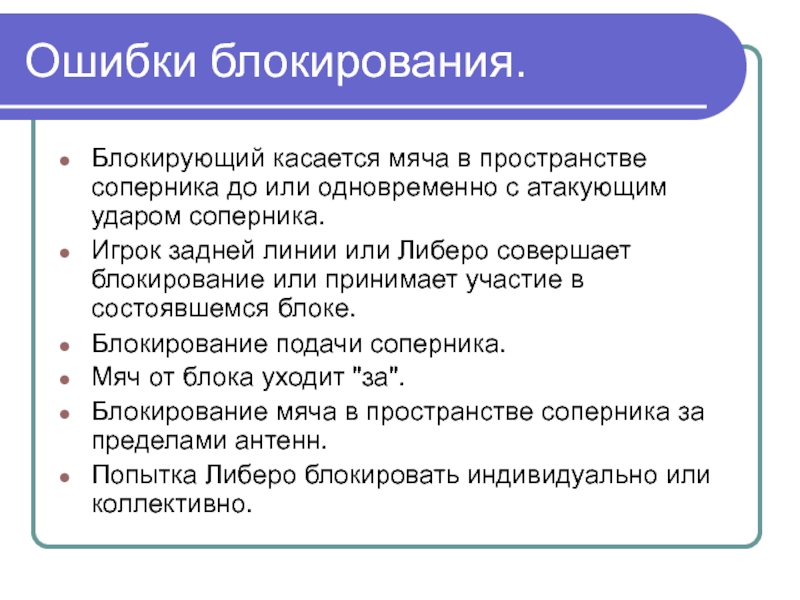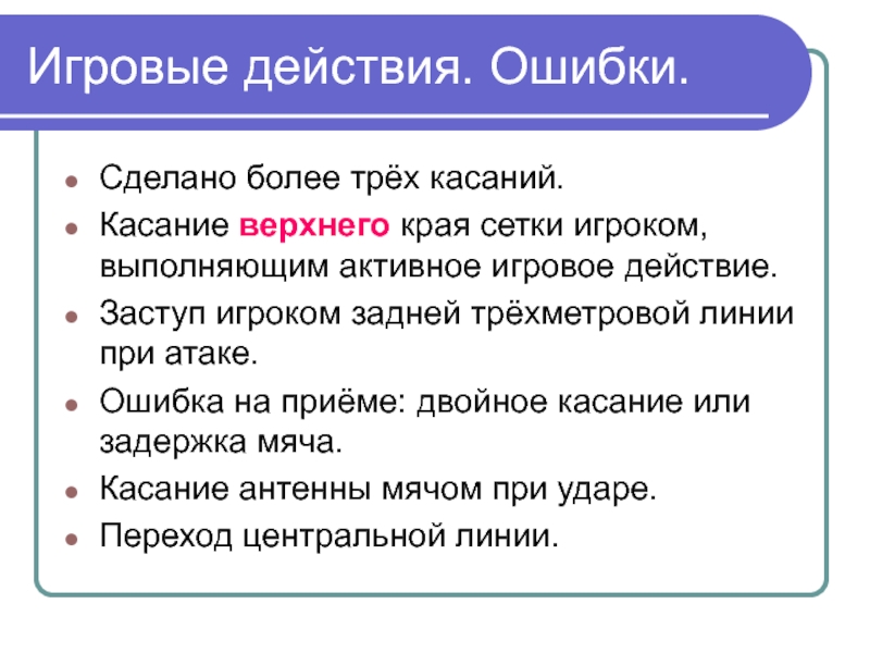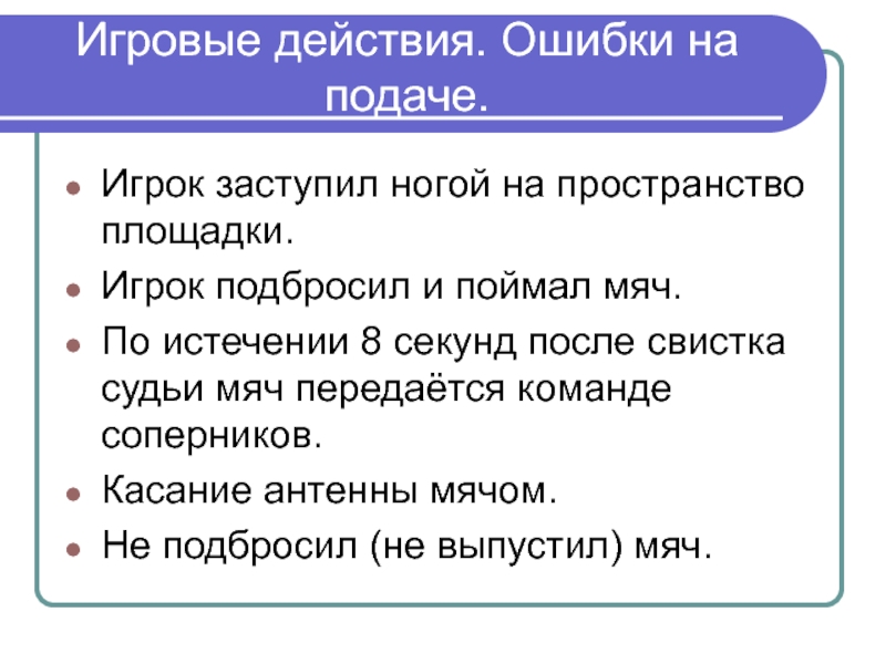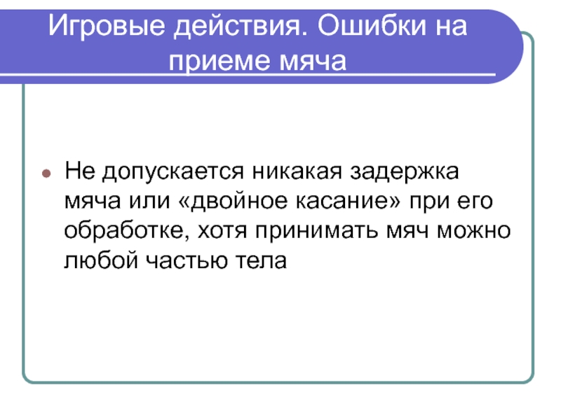 Слайд 16Игровые действия. Ошибки на приеме мяча