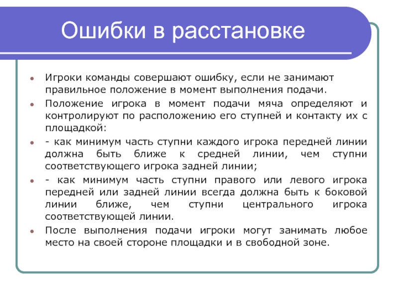 Игроки команды совершают ошибку, если не занимают правильное положение