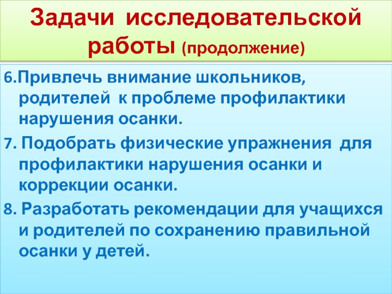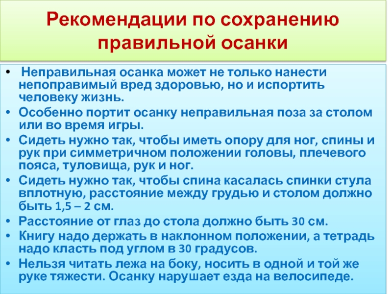 8. Разработать рекомендации для учащихся и родителей по сохранению правильной осанки у детей.