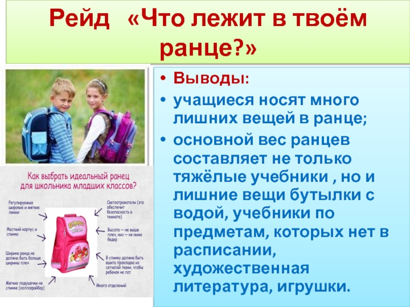 Слайд 35Рейд «Что лежит в твоём ранце?»
