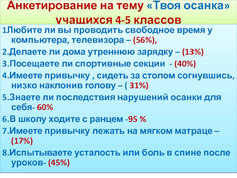 5.Проведение анкетирования учащихся «Твоя осанка»