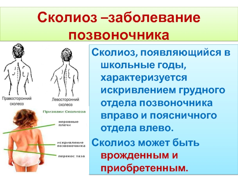 Сколиоз, появляющийся в школьные годы, характеризуется искривлением грудного отдела