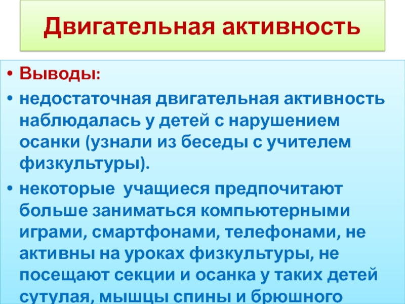 недостаточная двигательная активность наблюдалась у детей с нарушением осанки (узнали