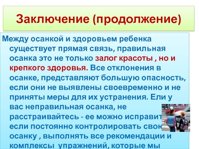 Значение правильной осанки у детей велико, так как в этот период идёт рост и формирование скелета.