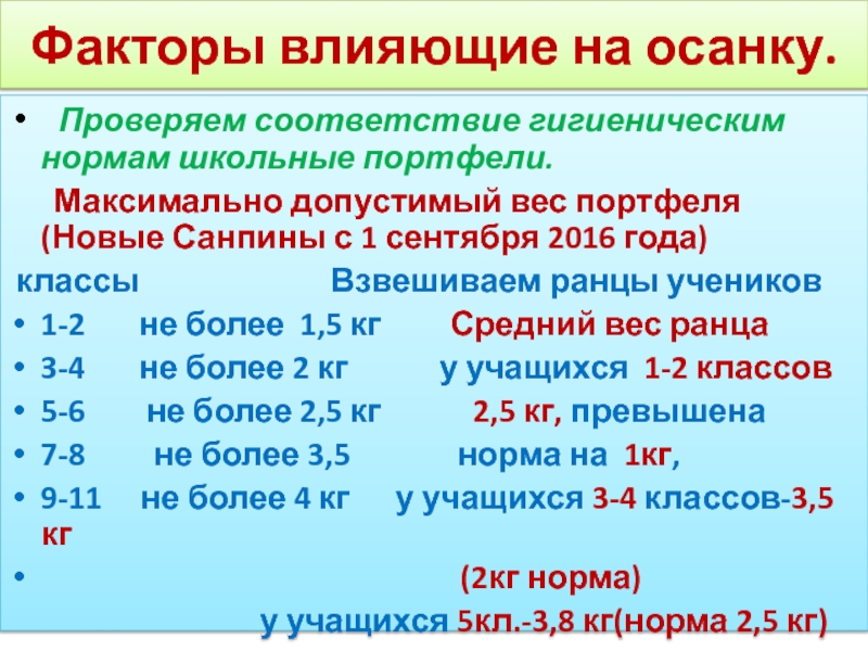 Максимально допустимый вес портфеля (Новые Санпины с 1 сентября 2016 года)