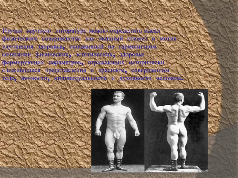 Слайд 6Изучая научную литературу можно определить идеал физического совершенства как мощный стимул