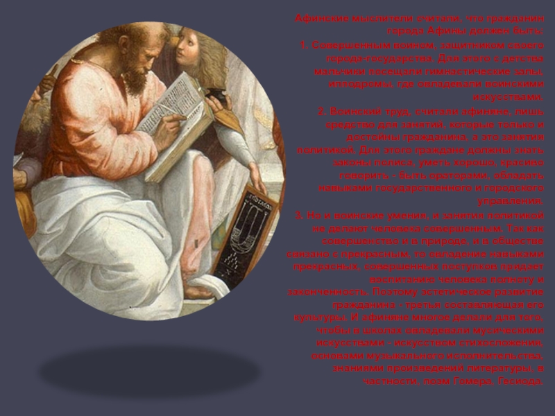 Слайд 3Афинские мыслители считали, что гражданин города Афины должен быть: