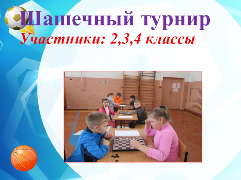 Слайд 5Шашечный турнир Участники: 2,3,4 классы