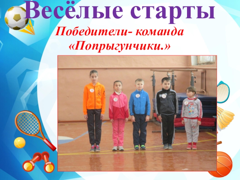 Слайд 2Весёлые старты Победители- команда «Попрыгунчики.»