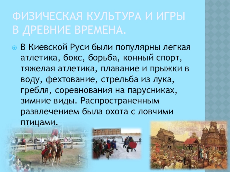 Слайд 8ФИЗИЧЕСКАЯ КУЛЬТУРА И ИГРЫ В ДРЕВНИЕ ВРЕМЕНА.