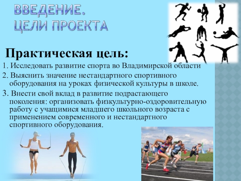 3. Внести свой вклад в развитие подрастающего поколения: организовать физкультурно-оздоровительную работу с учащимися младшего школьного возраста с применением современного и нестандартного спортивного оборудования.