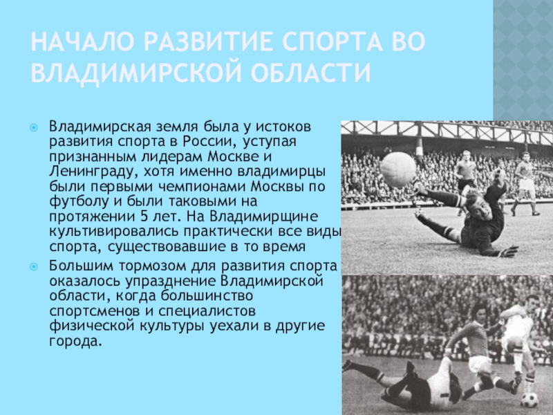 Слайд 9НАЧАЛО РАЗВИТИЕ СПОРТА ВО ВЛАДИМИРСКОЙ ОБЛАСТИ