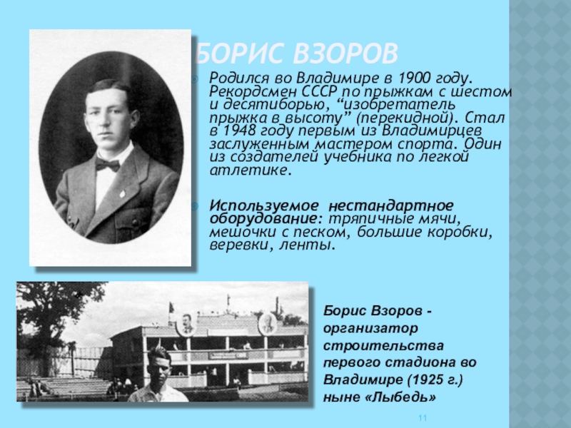 Борис Взоров - организатор строительства первого стадиона во Владимире (1925 г.) ныне «Лыбедь»