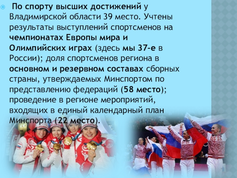 По спорту высших достижений у Владимирской области 39 место. Учтены