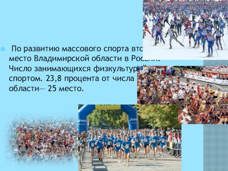 Слайд 29 СПОРТИВНАЯ ЖИЗНЬ В СОВРЕМЕННОЙ ВЛАДИМИРСКОЙ ОБЛАСТИ СКВОЗЬ ПРИЗМУ ЧИСЕЛ.