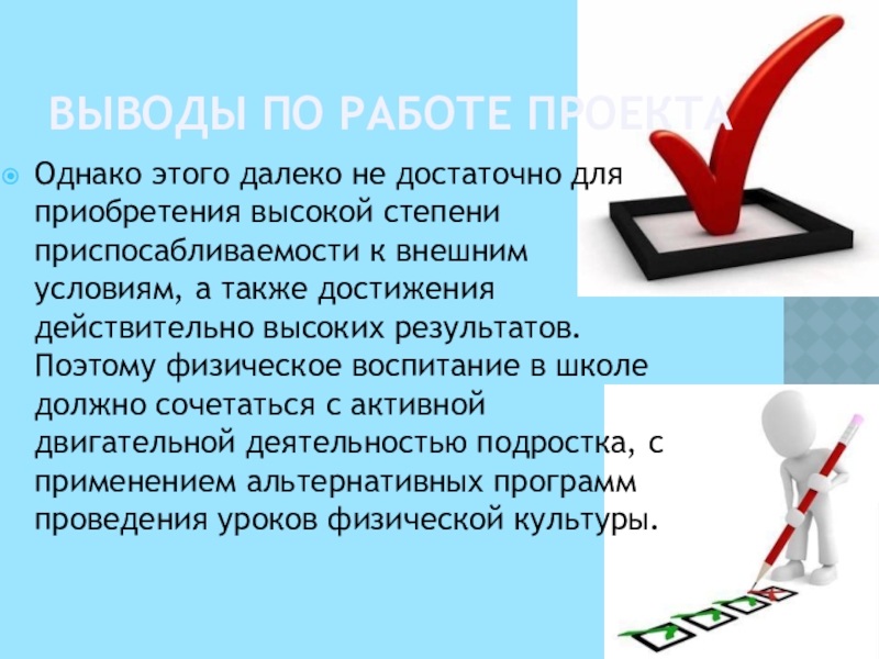 степени приспосабливаемости к внешним условиям, а также достижения действительно высоких результатов. Поэтому физическое воспитание в школе должно сочетаться с активной двигательной деятельностью подростка, с применением альтернативных программ проведения уроков физической культуры.