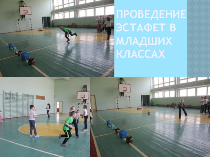 Слайд 40ПРОВЕДЕНИЕ ЭСТАФЕТ В МЛАДШИХ КЛАССАХ
