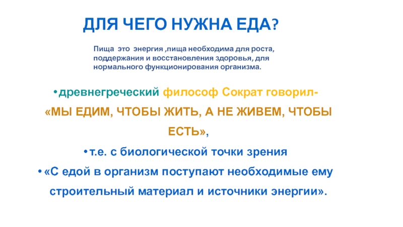древнегреческий философ Сократ говорил- «Мы едим, чтобы жить, а не живем, чтобы есть»,