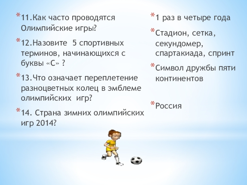 Слайд 2411.Как часто проводятся Олимпийские игры?