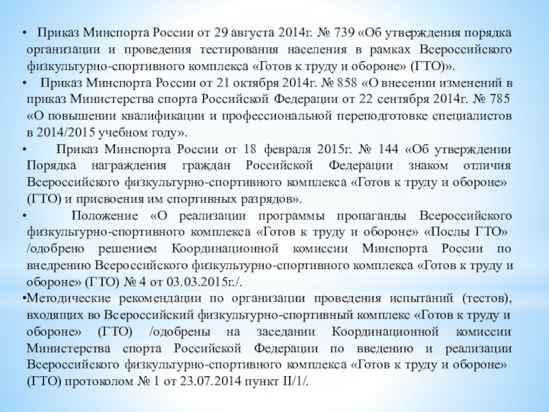 Слайд 21 Приказ Минспорта России от 29 августа 2014г. № 739
