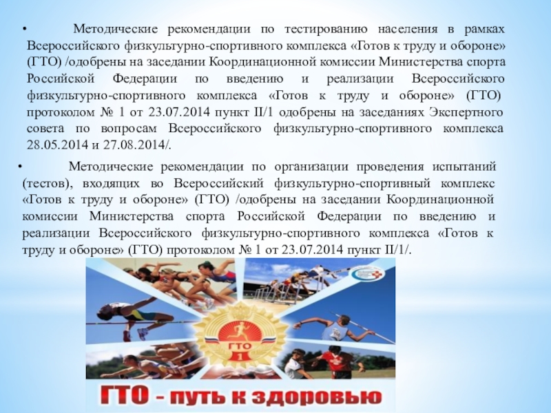 физкультурно-спортивного комплекса «Готов к труду и обороне» (ГТО) /одобрены на заседании Координационной комиссии Министерства спорта Российской Федерации по введению и реализации Всероссийского физкультурно-спортивного комплекса «Готов к труду и обороне» (ГТО) протоколом № 1 от 23.07.2014 пункт II/1 одобрены на заседаниях Экспертного совета по вопросам Всероссийского физкультурно-спортивного комплекса 28.05.2014 и 27.08.2014/.