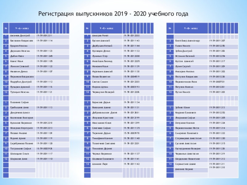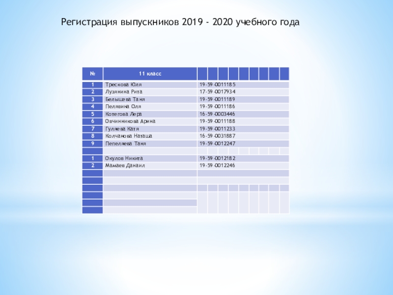 Слайд 17Регистрация выпускников 2019 - 2020 учебного года