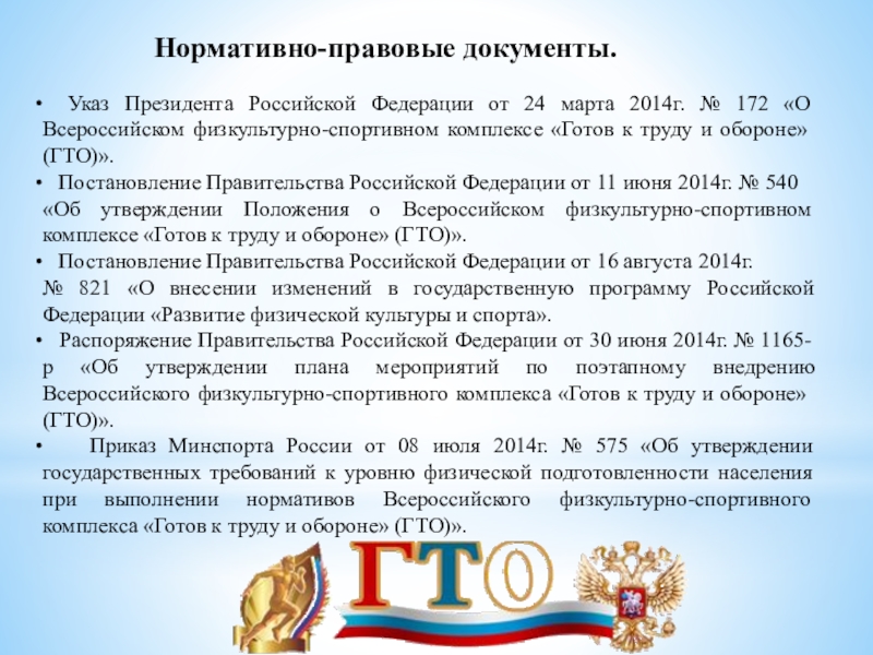 172 «О Всероссийском физкультурно-спортивном комплексе «Готов к труду и обороне» (ГТО)».