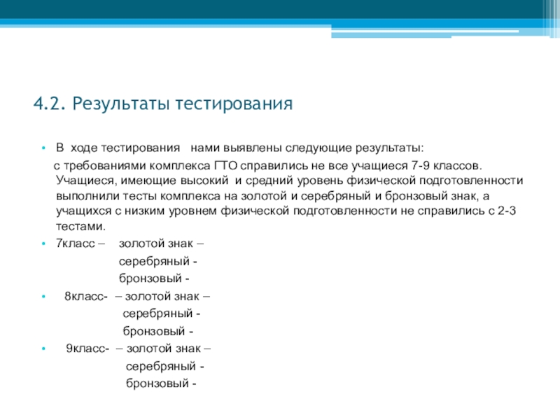 Слайд 26 Также нами совместно с учителями физической культуры было проведено тестирование