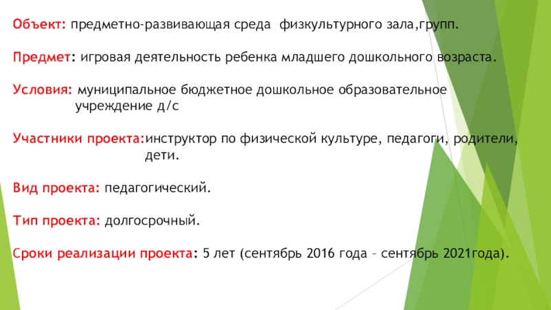 Слайд 4Объект: предметно-развивающая среда физкультурного зала,групп.