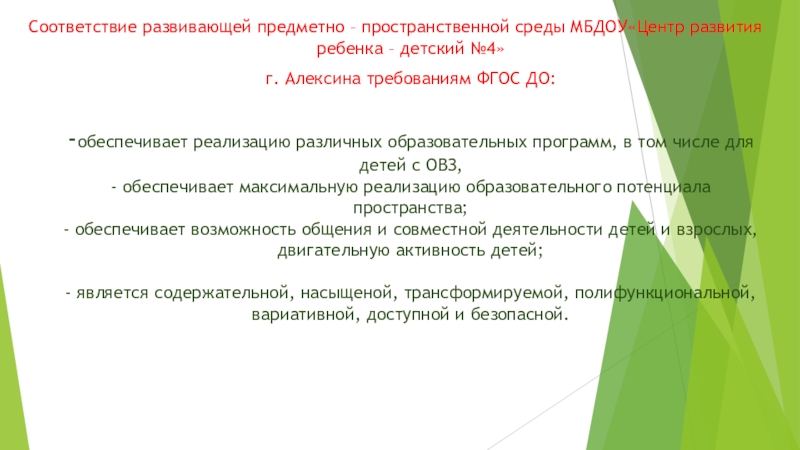 Слайд 23Соответствие развивающей предметно – пространственной среды МБДОУ«Центр развития ребенка – детский