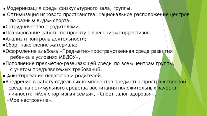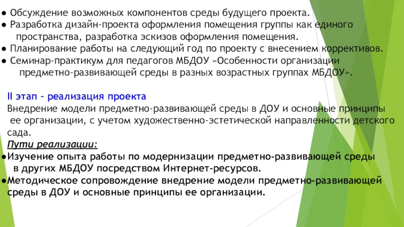 • Разработка модели предметно-развивающей среды в ДОУ и основные принципы