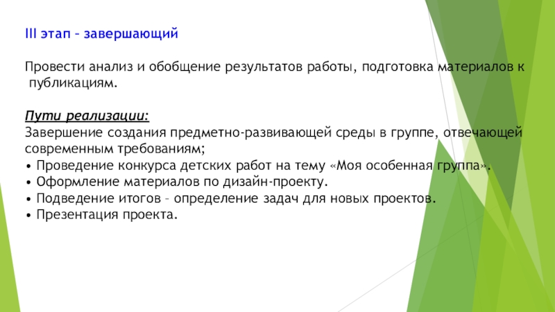 Планирование работы на следующий год по проекту с внесением коррективов.