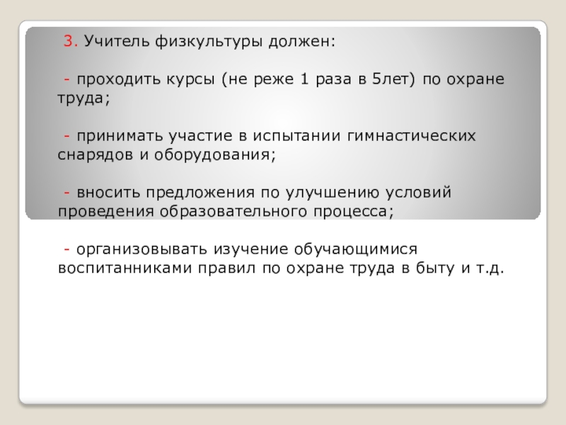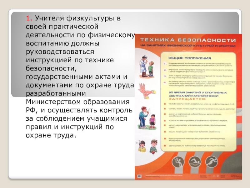 Слайд 17Общие требования по технике безопасности, относящиеся непосредственно к учителю по физической