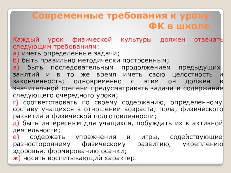 Слайд 14Учителю на каждом уроке следует добиваться достаточной физической нагрузки на организм