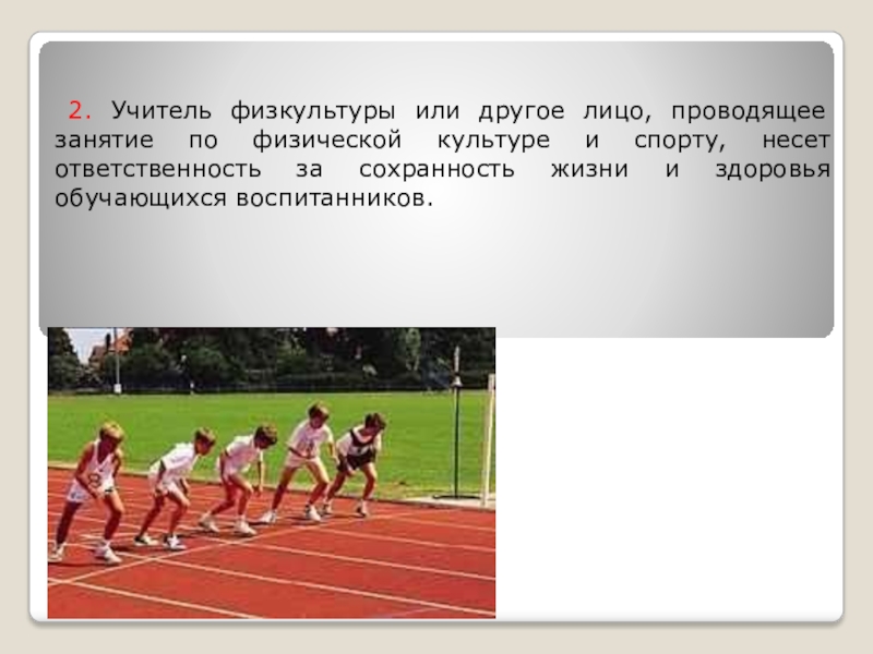 Слайд 19 2. Учитель физкультуры или другое лицо, проводящее занятие по физической