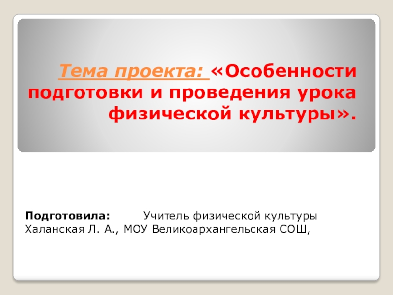 Слайд 1Тема проекта: «Особенности подготовки и проведения урока физической культуры».