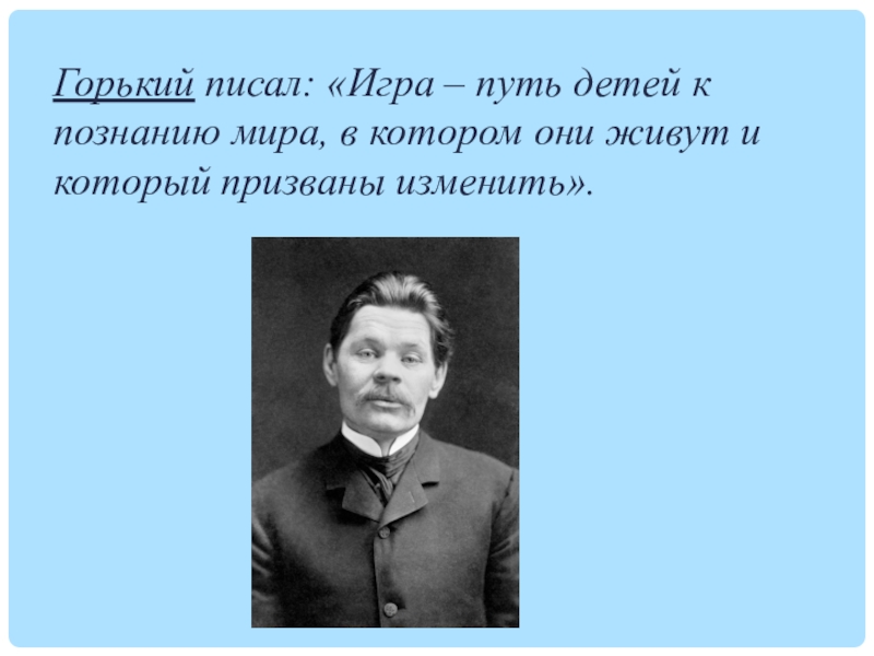 Слайд 10Горький писал: «Игра – путь детей к познанию мира, в котором