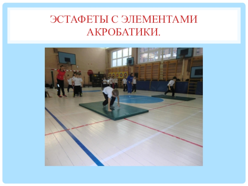 Слайд 36Эстафеты с элементами акробатики.