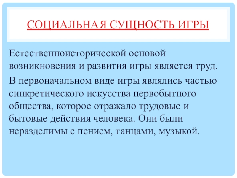 Естественноисторической основой возникновения и развития игры является труд.