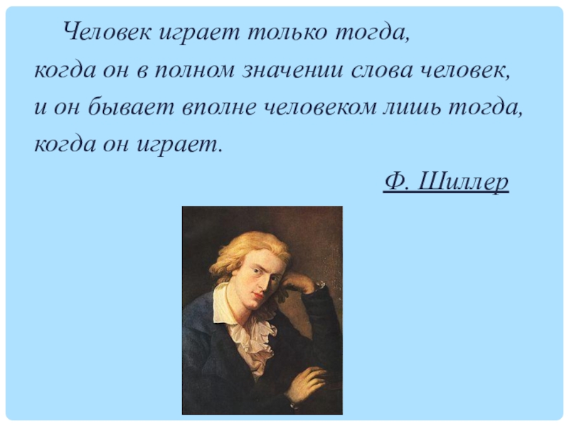 Слайд 8 Человек играет только тогда,