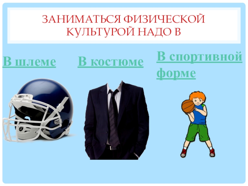 Слайд 24Заниматься физической культурой надо в