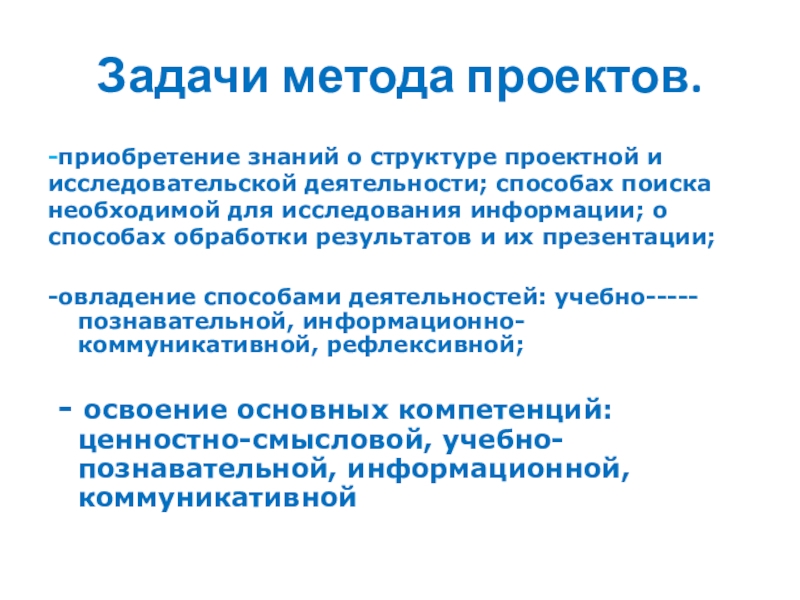 -приобретение знаний о структуре проектной и исследовательской деятельности; способах