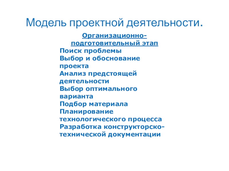 последовательности для достижения поставленной задачи – решения определенной ПРОБЛЕМЫ, значимой для учащихся и оформленной в виде некоего конечного ПРОДУКТА.