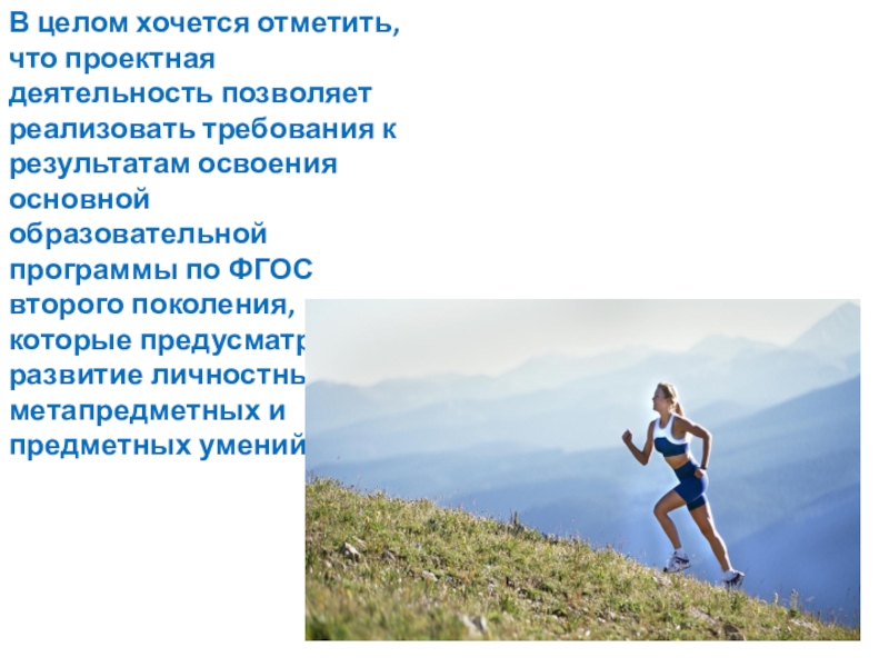Слайд 12В целом хочется отметить, что проектная деятельность позволяет реализовать требования к