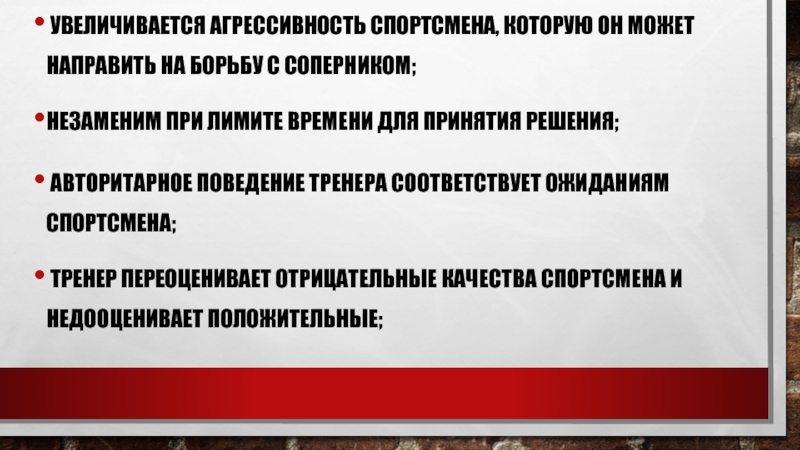 Слайд 13• спортсмен чувствует себя с таким тренером более свободно и охотно