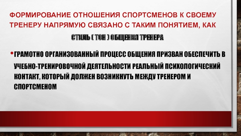 Слайд 25Формирование отношения спортсменов к своему тренеру напрямую связано с таким понятием,