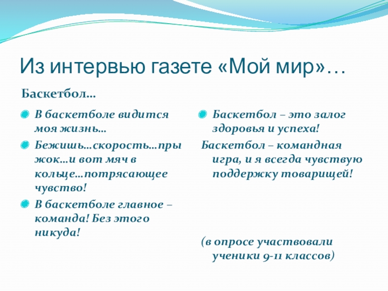 Баскетбол – командная игра, и я всегда чувствую поддержку товарищей!