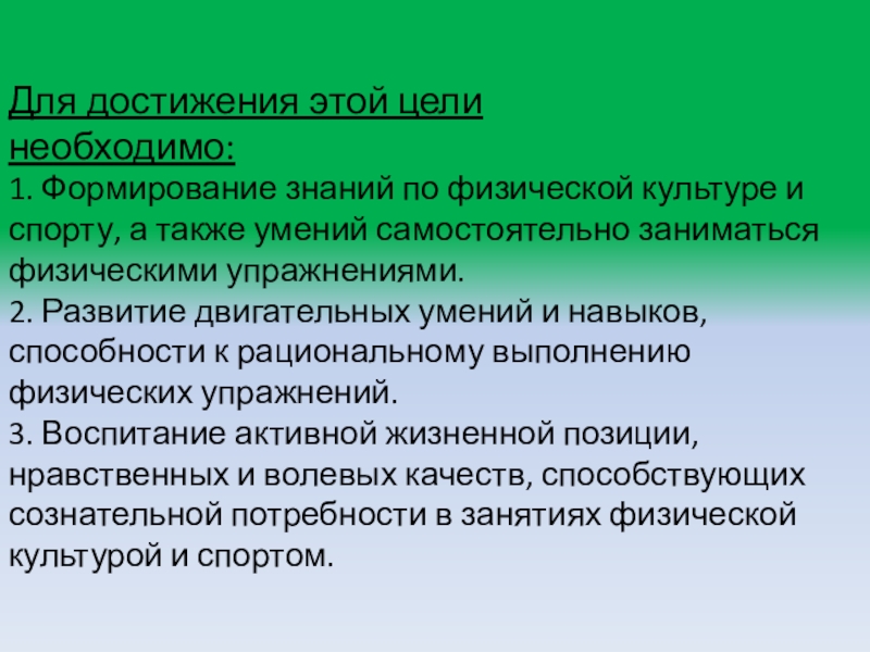 – формирование личности, обладающей хорошим физическим здоровьем, способной адаптироваться к любым жизненным ситуациям, стремящейся к постоянному самосовершенствованию.
