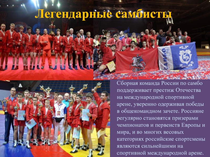 спортивной арене, уверенно одерживая победы в общекомандном зачете. Россияне регулярно становятся призерами чемпионатов и первенств Европы и мира, и во многих весовых категориях российские спортсмены являются сильнейшими на спортивной международной арене.