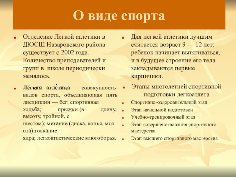 Этапы многолетней спортивной подготовки легкоатлета